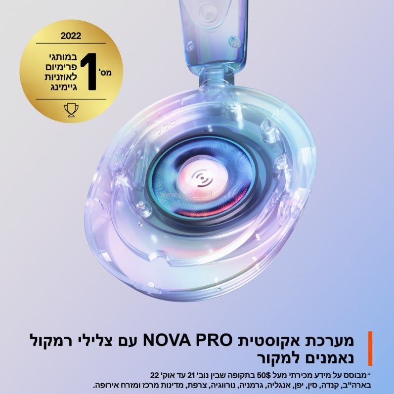 מערכת אקוסטית Nova– מנהלי התקנים חזקים ומעוצבים בהתאמה אישית משלבים עם תוכנת סונר SteelSeries המספקת 360 אודיו מרחבי ו-EQ פרמטרי בדרגה Pro.
