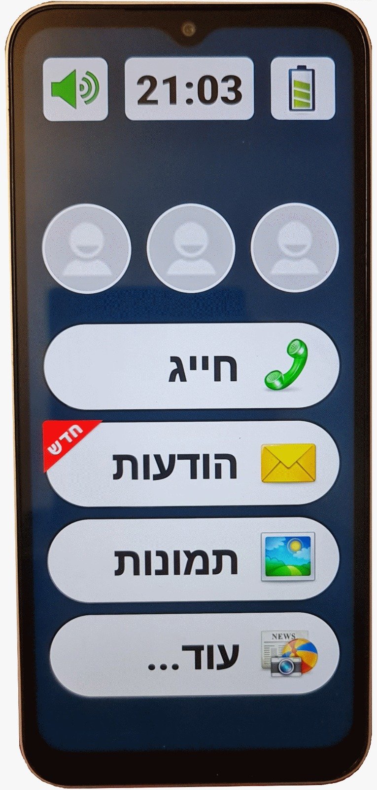 2) קריאה והתמצאות נוחים – שימוש בפונטים גדולים ; בכפתורים ענקיים ובתפריט מוכן מראש.