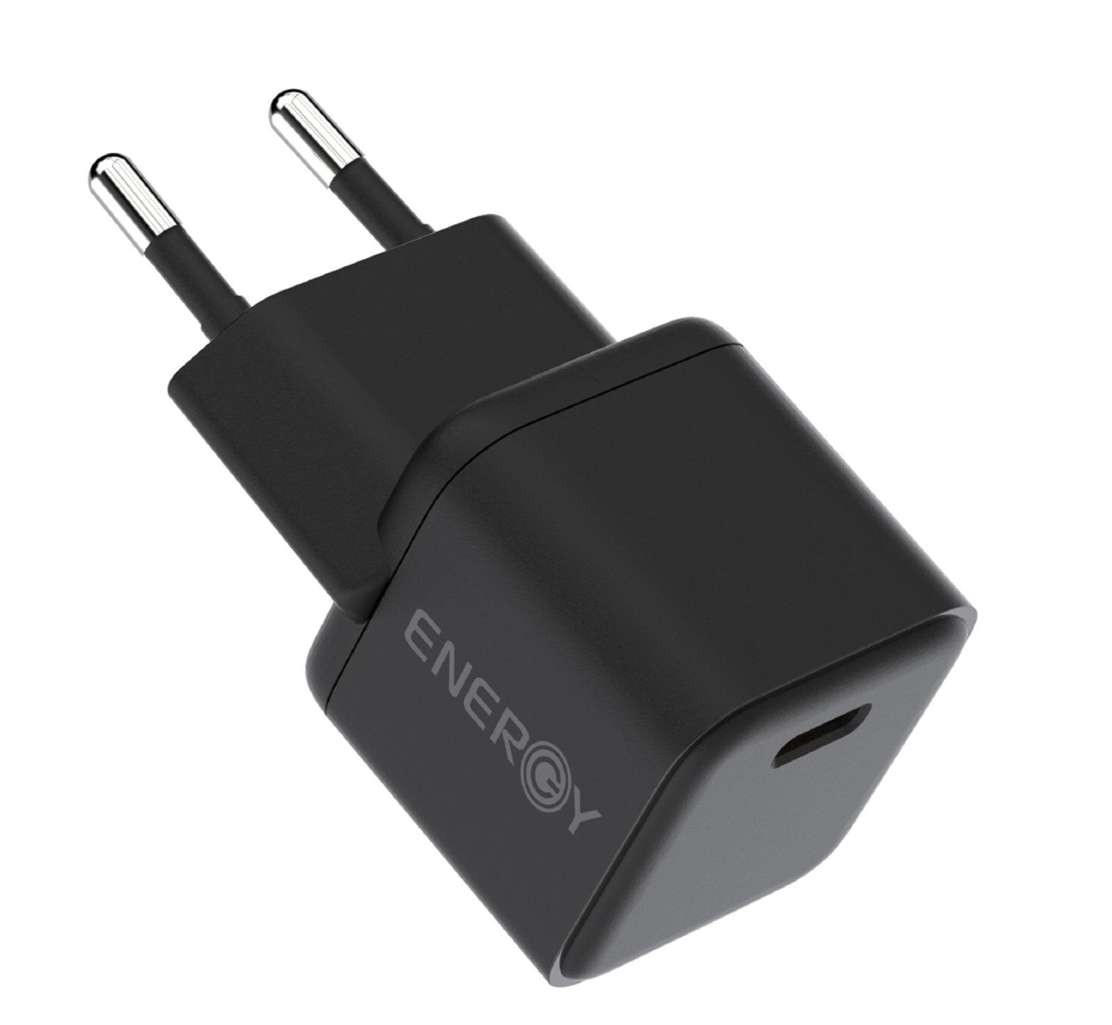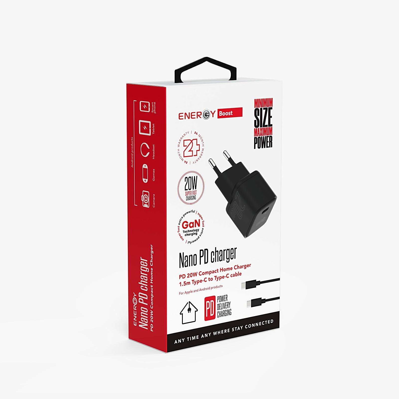 מטען בית ENERGY Nano PD20W+C to C 1.5M שחור – כולל כבל טייפ C