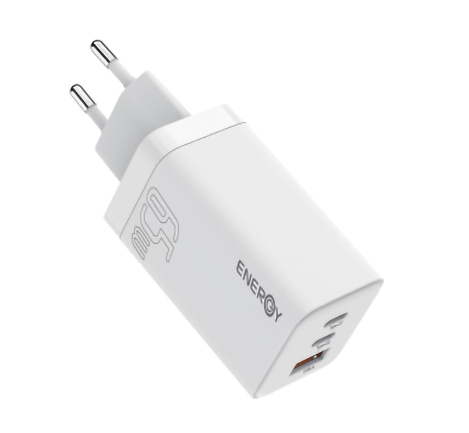 מטען בית ENERGY Premium 2C+1QC PD65W with C to C 1.5M cable שחור – כולל כבל טייפ C