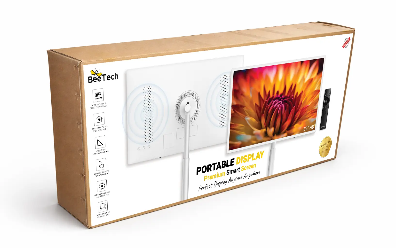 המפרט הטכני של BeeTech B-32s כולל מעבד מהיר ומערכת הפעלה חכמה המאפשרת גישה ישירה לשירותי סטרימינג מובילים כמו Netflix ו-YouTube. הסטנד הרצפתי המעוצב כולל בסיס יציב וגלגלים סמויים המאפשרים לכם לנייד את המסך ללא מאמץ, בעוד שהשלט הרחוק המצורף מאפשר שליטה מלאה גם מרחוק. בין אם אתם זקוקים למסך נוסף לעבודה, למשחקים או לצפייה בבישול תוך כדי עבודה במטבח, המסך החכם של BeeTech מתאים את עצמו לקצב החיים שלכם.