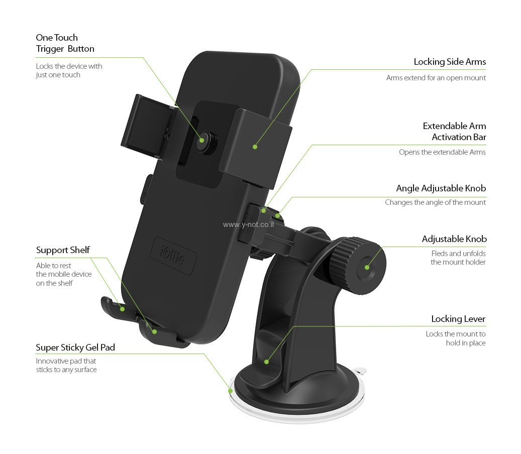 זהו מעמד לרכב שתוכנן לנגיעה אחת קלה המאפשרת הרכבה ושחרור של המכשיר רק עם הדחיפה של אצבע.