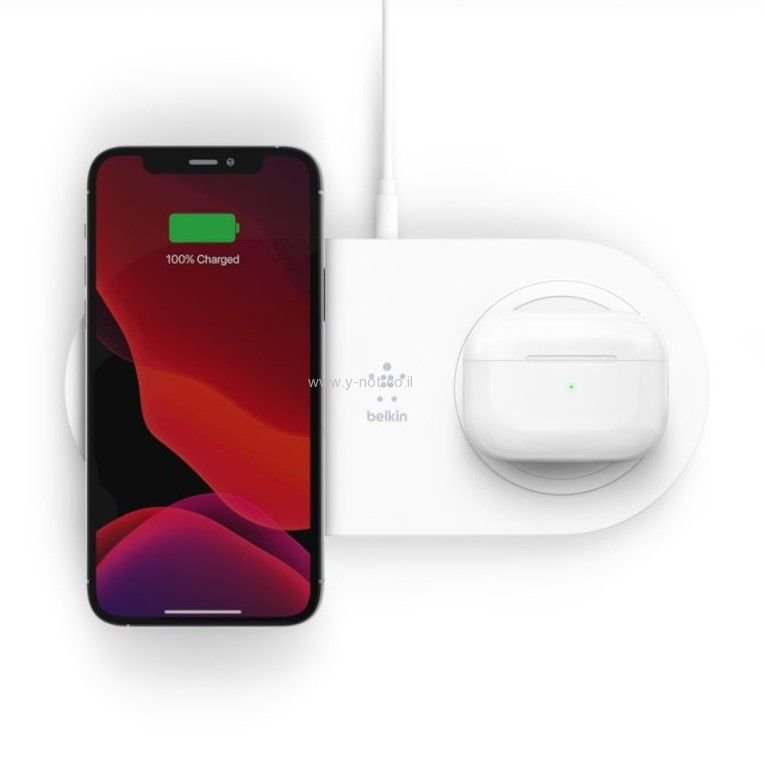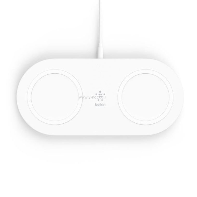 משטח טעינה כפול המתאים לטעינה אלחוטית בתקן QI של 2 מכשירים במקביל.