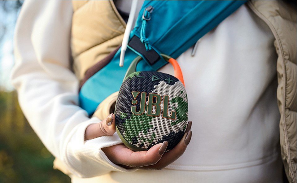 העיצוב הנייד במיוחד של JBL Clip 5 משתלב נהדר עם הסגנונות העדכניים ביותר ; הבדים הצבעוניים והפרטים האקספרסיביים שלו גורמים לו להראות נהדר כמו שהוא נשמע.